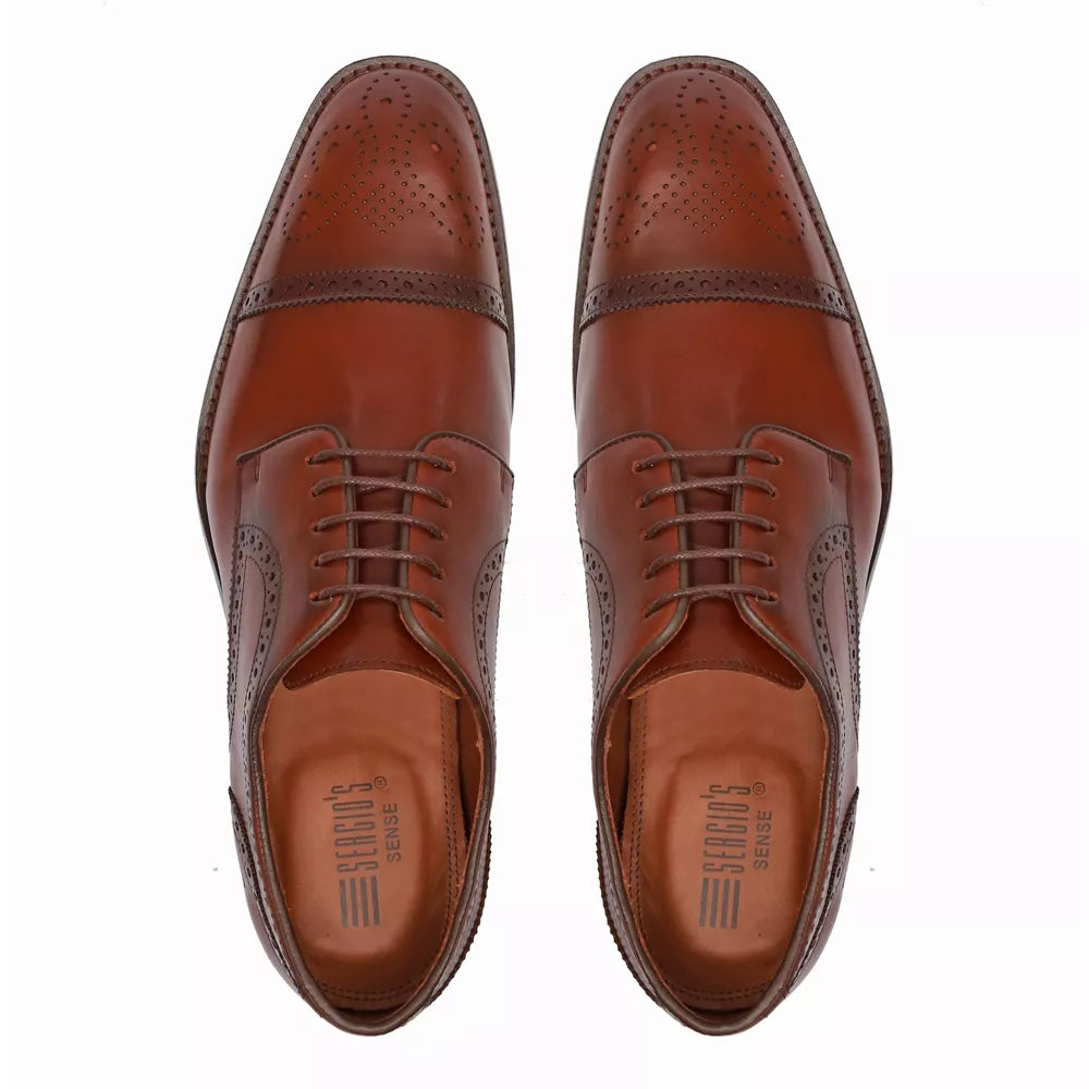 • Sapato Derby Brogue masculino em couro natural de qualidade superior
